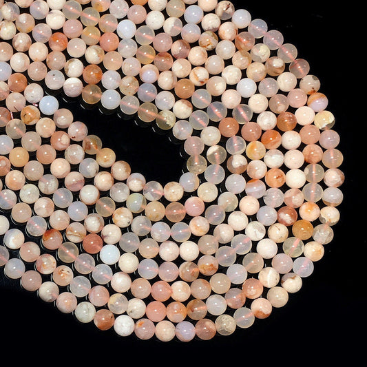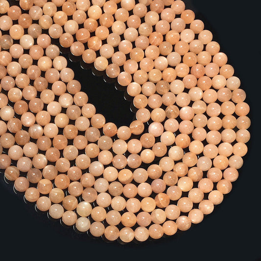 Natural Peach Moonstone Round Smooth Beads