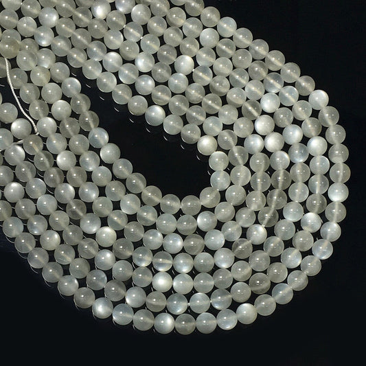 Natural Grey Milky Moonstone Highly Polished Round Beads