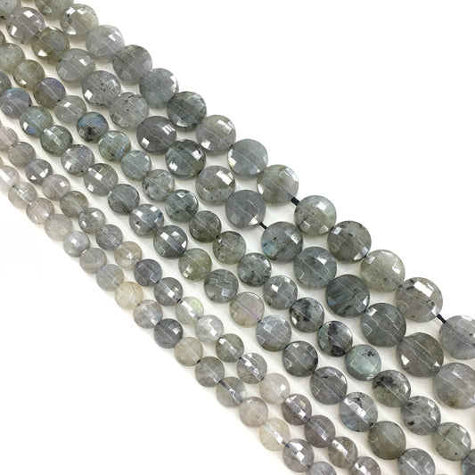 Natural Labradorite or Gray Moonstone Faceted Flat Coin