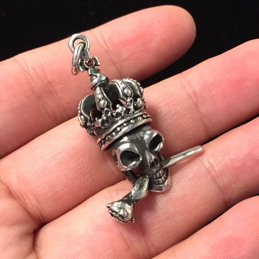 Vintage Skull Sword 925 Sterling Silver Pendant