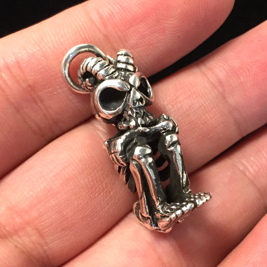 Skeleton Skull Vintage Hook 925 Sterling Silver Pendant