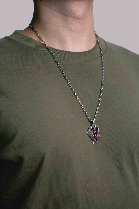 Retro Domineering Dragon Wings Red Zircon Pendant