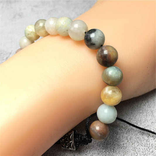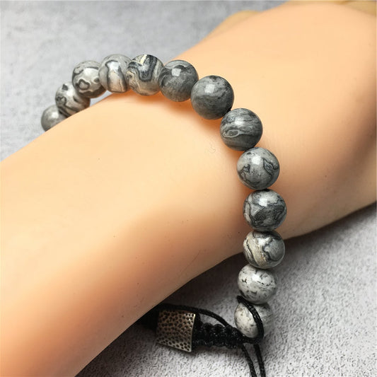 Natural Map Stone Gemstone Beads Bracelet Handmade Round Beaded Bracelet