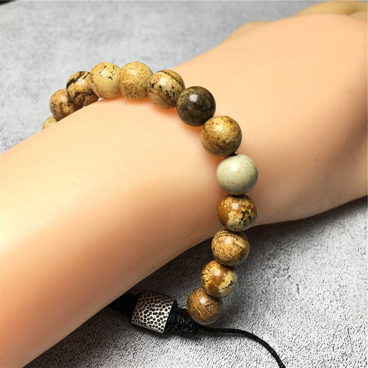 Picture Jasper Gemstone Beads Bracelet Handmade Round Beaded Bracelet