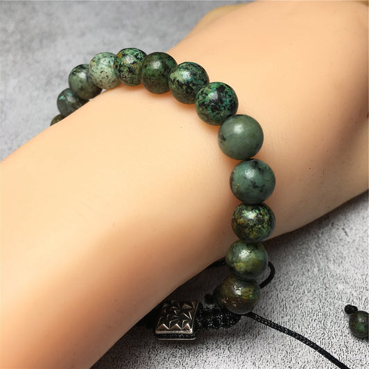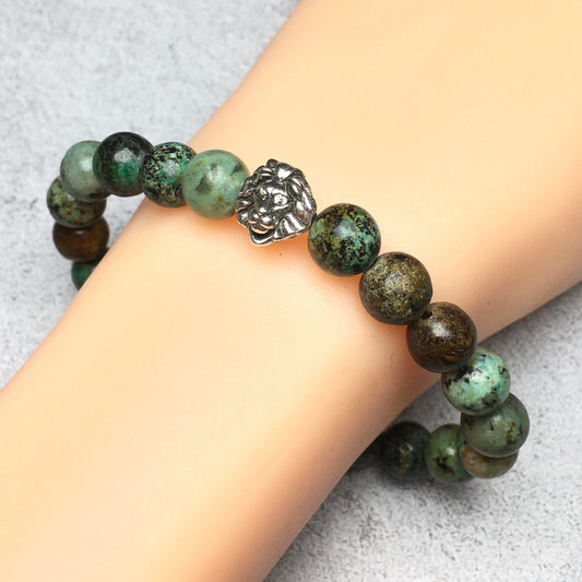 Natural African Turquoise Beaded Bracelet Elastic Adjustable Gemstone Bracelet Lion Style