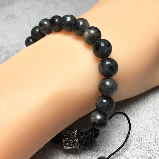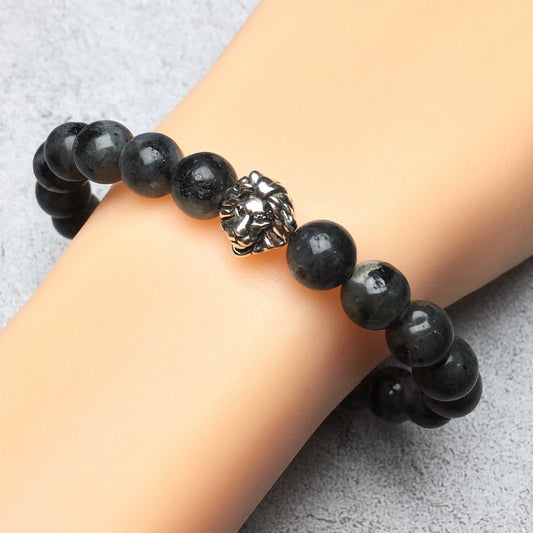 Natural Labradorite Beaded Bracelet Elastic Adjustable Gemstone Bracelet Lion Style