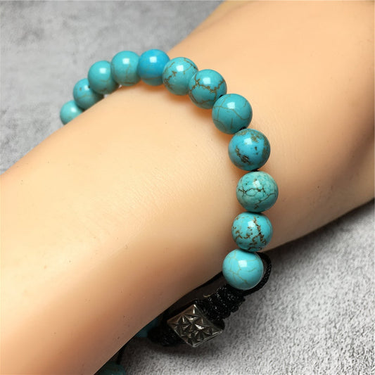 African Turqoiuse Gemstone Beaded Adjustable Braid Rope Handmade Bracelet