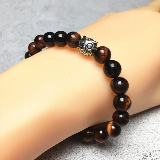 Natural Red Tiger Eyes Gemstone Elastic Handmade Beaded Bracelet Adjustable Bracelet Owl Design