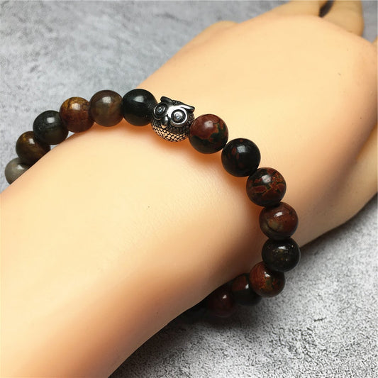 Natural Picasso Jasper Gemstone Elastic Handmade Beaded Bracelet Adjustable Bracelet Owl Design
