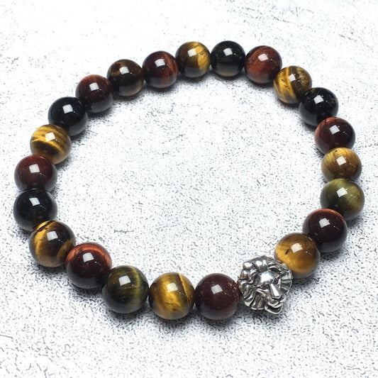 Natural Colorful Tiger Eyes Beaded Bracelet Elastic Adjustable Gemstone Bracelet Lion Style