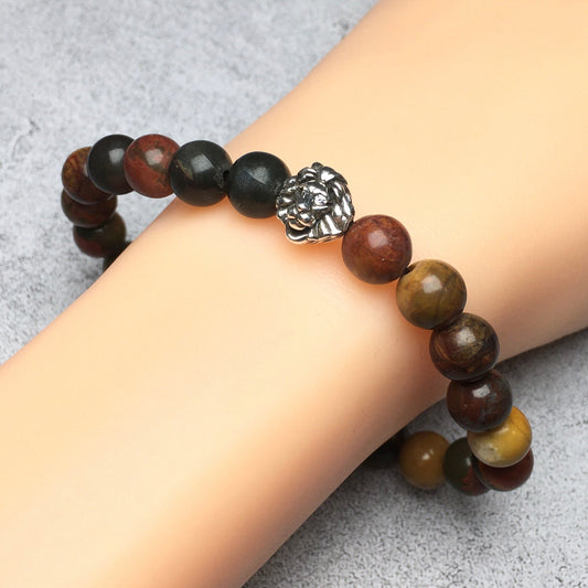 Natural Picasso Jasper Beaded Bracelet Elastic Adjustable Gemstone Bracelet Lion Style