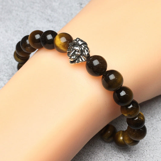 Natural Tiger Eyes Beaded Bracelet Elastic Adjustable Gemstone Bracelet Lion Style
