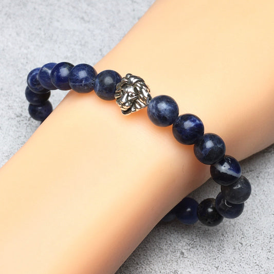 Natural Blue Sodalite Beaded Bracelet Elastic Adjustable Gemstone Bracelet Lion Style