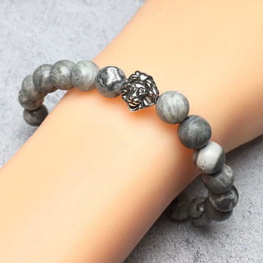 Natural Map Stone Beaded Bracelet Elastic Adjustable Gemstone Bracelet Lion Style