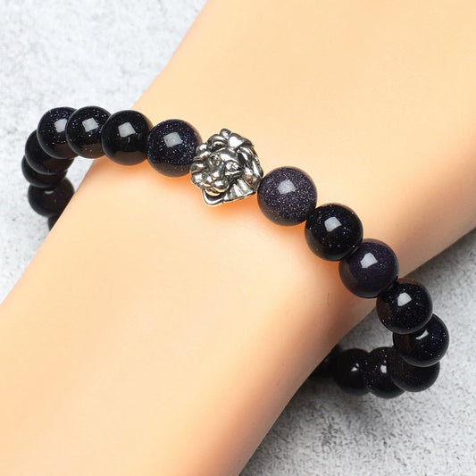 Blue Sandstone Beaded Bracelet Elastic Adjustable Gemstone Bracelet Lion Style