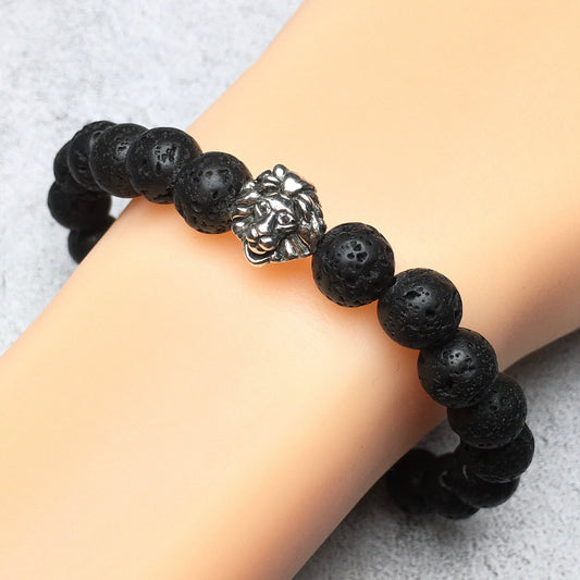 Natural Lava Stone Beaded Bracelet Elastic Adjustable Gemstone Bracelet Lion Style