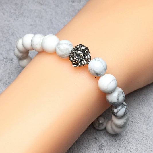 Natural Howlite Beaded Bracelet Elastic Adjustable Gemstone Bracelet Lion Style