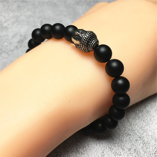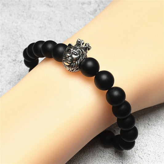 Natural Matte Onyx Gemstone Bracelet Beaded Adjustable Bracelet Lion King Design