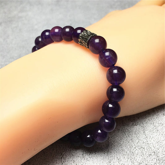 Purple Amethyst Gemstone Beaded Adjustable Handmade Bracelet