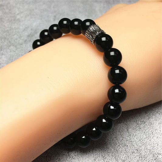 Matte Black Onyx Beaded Bracelets for Men Women Power Gemstone Unisex Adjustable Bracelets