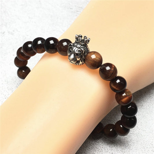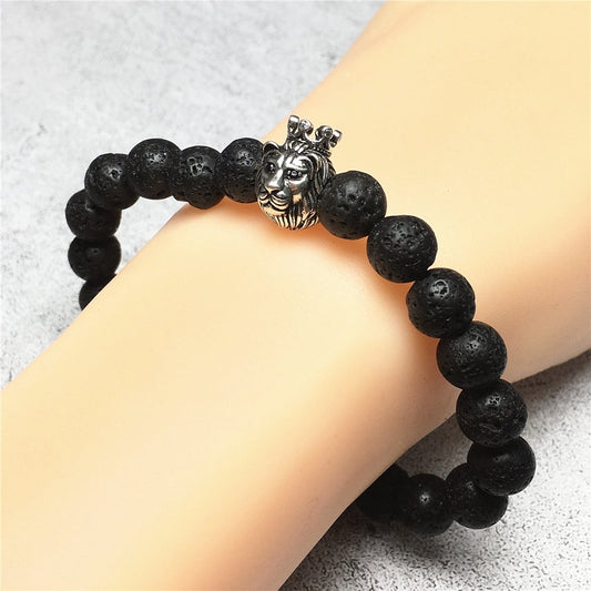 Natural Lava Stone Gemstone Bracelet Beaded Adjustable Bracelet Lion King Design