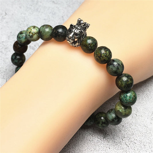 Natural African Turquoise Gemstone Bracelet Beaded Adjustable Bracelet Lion King Design