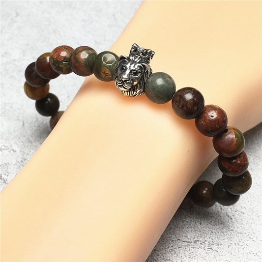 Natural Picasso Jasper Gemstone Bracelet Beaded Adjustable Bracelet Lion King Design