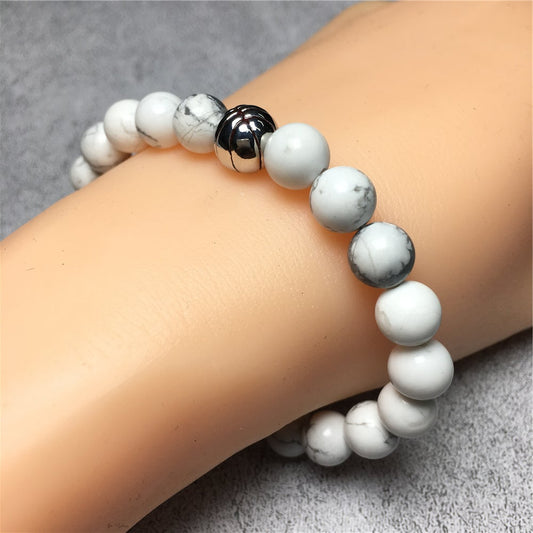 Handmade Natural Howlite Genuine Gemstones Basketball Charms Beads Bracelet