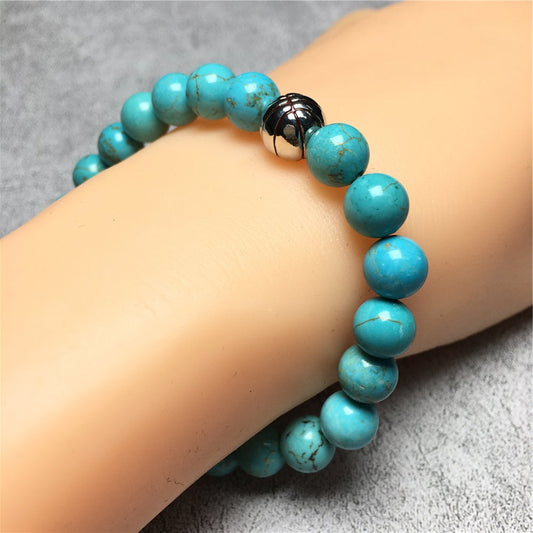 Blue Turqouise Gemstones Handmade Basketball Charms Beads Bracelet