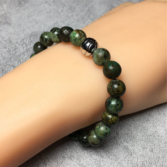 African Turqoiuse Gemstones Handmade Basketball Charms Beads Bracelet