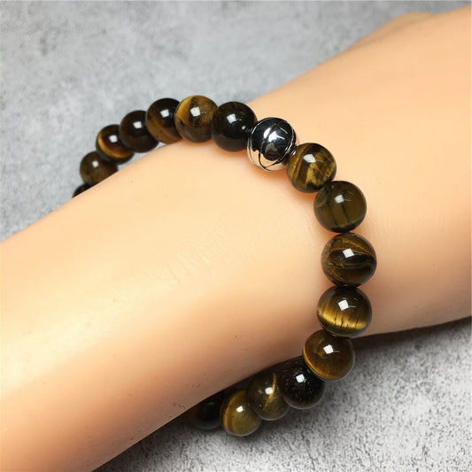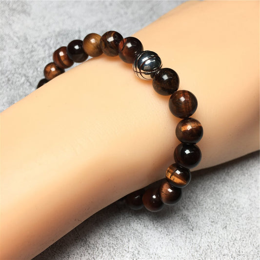 Handmade Natural Tigereye Genuine Gemstones Basketball Charms Beads Bracelet