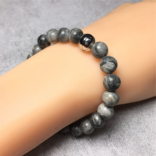 Map Stone Genuine Gemstones Handmade Basketball Charms Beads Bracelet
