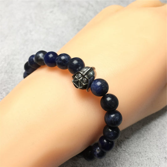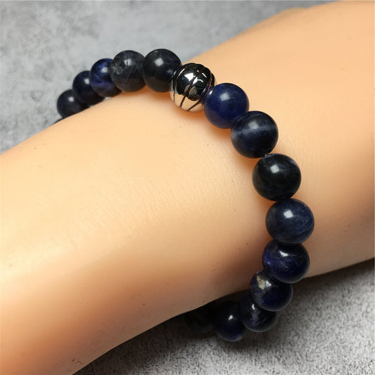 Handmade Natural Sodalite Genuine Gemstones Basketball Charms Beads Bracelet