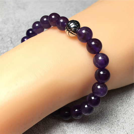 Handmade Natural Purple Amethyst Genuine Gemstones Basketball Charms Beads Bracelet