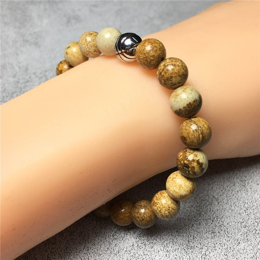 Picture Jasper Gemstones Handmade Basketball Charms Beads Bracelet
