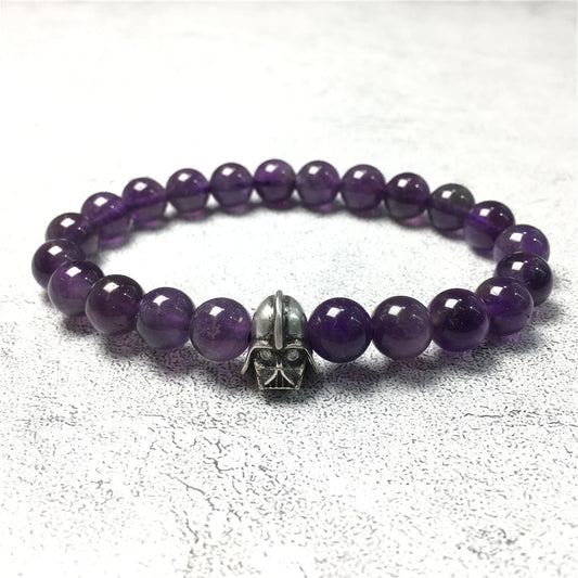 Imperial Darth Vader Charms Purple Amethyst Beads Stone Jewellery Elastic Bracelets