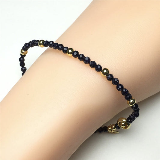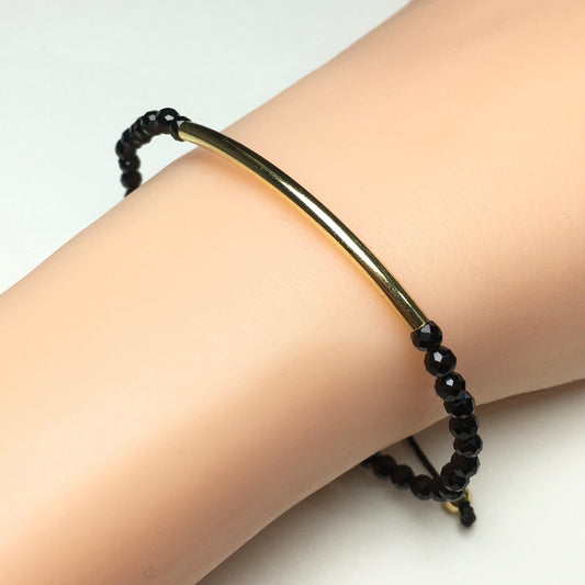 Natural Black Spinel Gemstone Braid Rope Macrame Adjustable Bracelet Tiny Beads Gemstone Bracelet with Gold Spacer