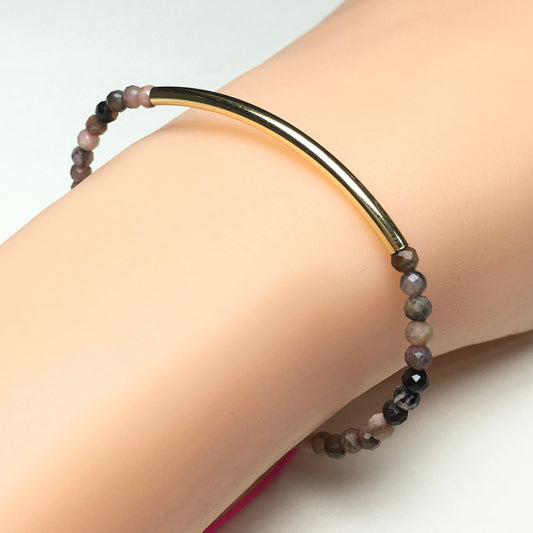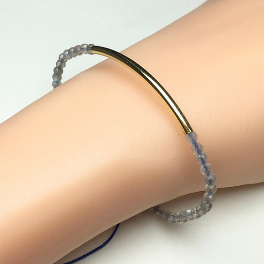 Natural Labradorite Gemstone Braid Rope Macrame Adjustable Bracelet Tiny Beads Gemstone Bracelet with Gold Spacer