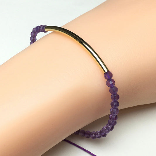 Natural Purple Amethyst Gemstone Braid Rope Macrame Adjustable Bracelet Tiny Beads Gemstone Bracelet with Gold Spacer