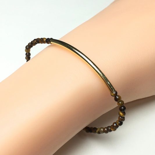 Natural Tiger Eyes Gemstone Braid Rope Macrame Adjustable Bracelet Tiny Beads Gemstone Bracelet with Gold Spacer