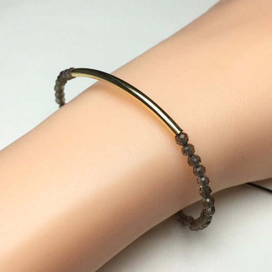 Natural Smoky Quartz Gemstone Braid Rope Macrame Adjustable Bracelet Tiny Beads Gemstone Bracelet with Gold Spacer