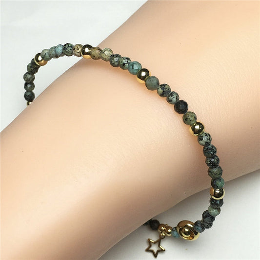 African Turquoise Gemstone Adjustable Tiny Beads Gemstone Bracelet with Star Charm