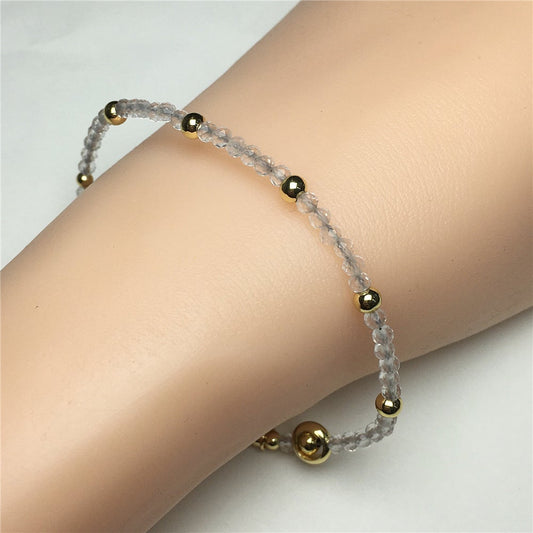 Clear Quartz Gemstone Adjustable Tiny Beads Gemstone Bracelet with Star Charm