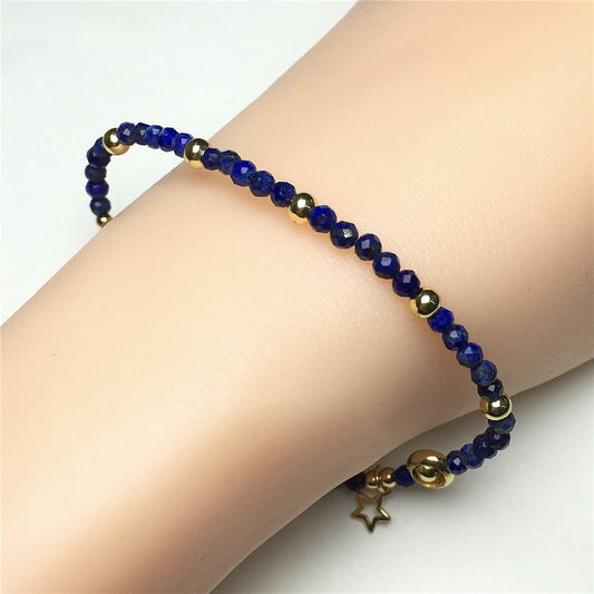 Lapis Lazuli Gemstone Adjustable Tiny Beads Gemstone Bracelet with Star Charm