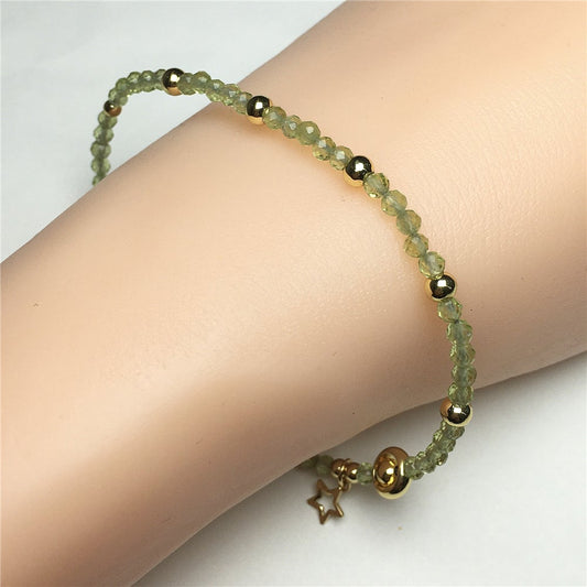 Peridot Gemstone Adjustable Tiny Beads Gemstone Bracelet with Love Heart Charm