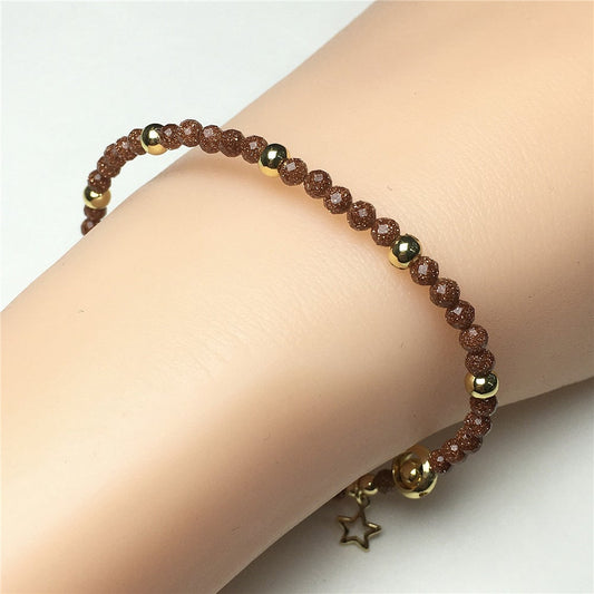 Gold Sandstone Gemstone Adjustable Tiny Beads Gemstone Bracelet with Star Charm