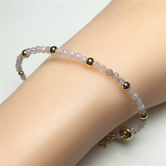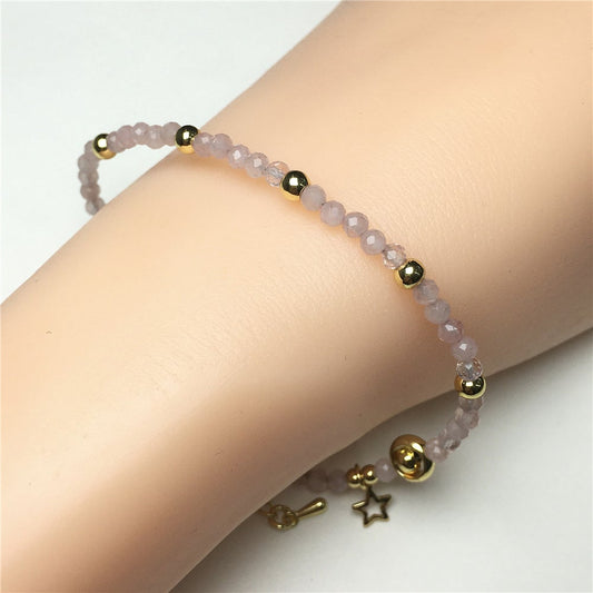 Morganite Gemstone Adjustable Tiny Beads Gemstone Bracelet with Star Charm
