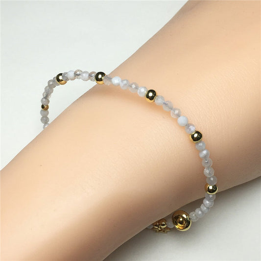 Moonstone Gemstone Adjustable Tiny Beads Gemstone Bracelet with Star Charm