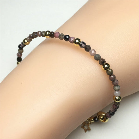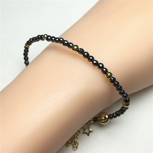 Hematite Gemstone Adjustable Tiny Beads Gemstone Bracelet with Star Charm