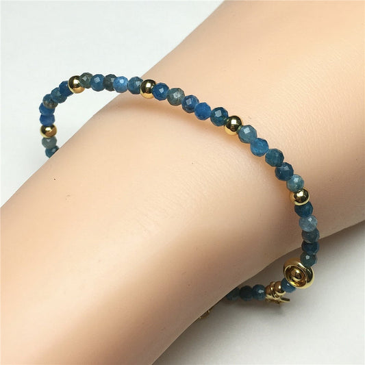 Blue Apatite Gemstone Adjustable Tiny Beads Gemstone Bracelet with Star Heart Charm